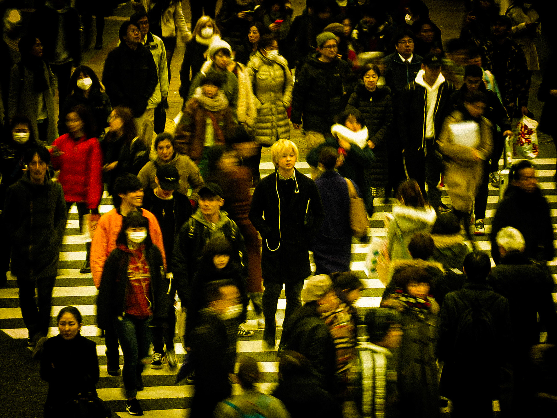 En el centro de la escena, un joven pasa por el cruce de Shibuya, en Tokio, Japón.