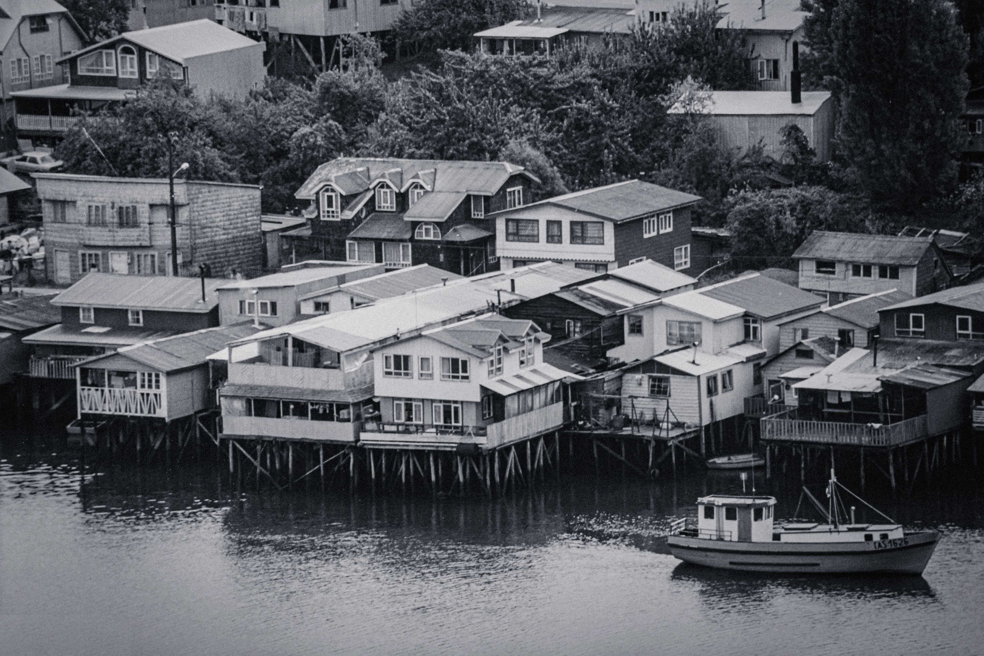 Casas sobre palafitos en la ciudad de Castro, Isla de Chiloé, al sur de Chile.