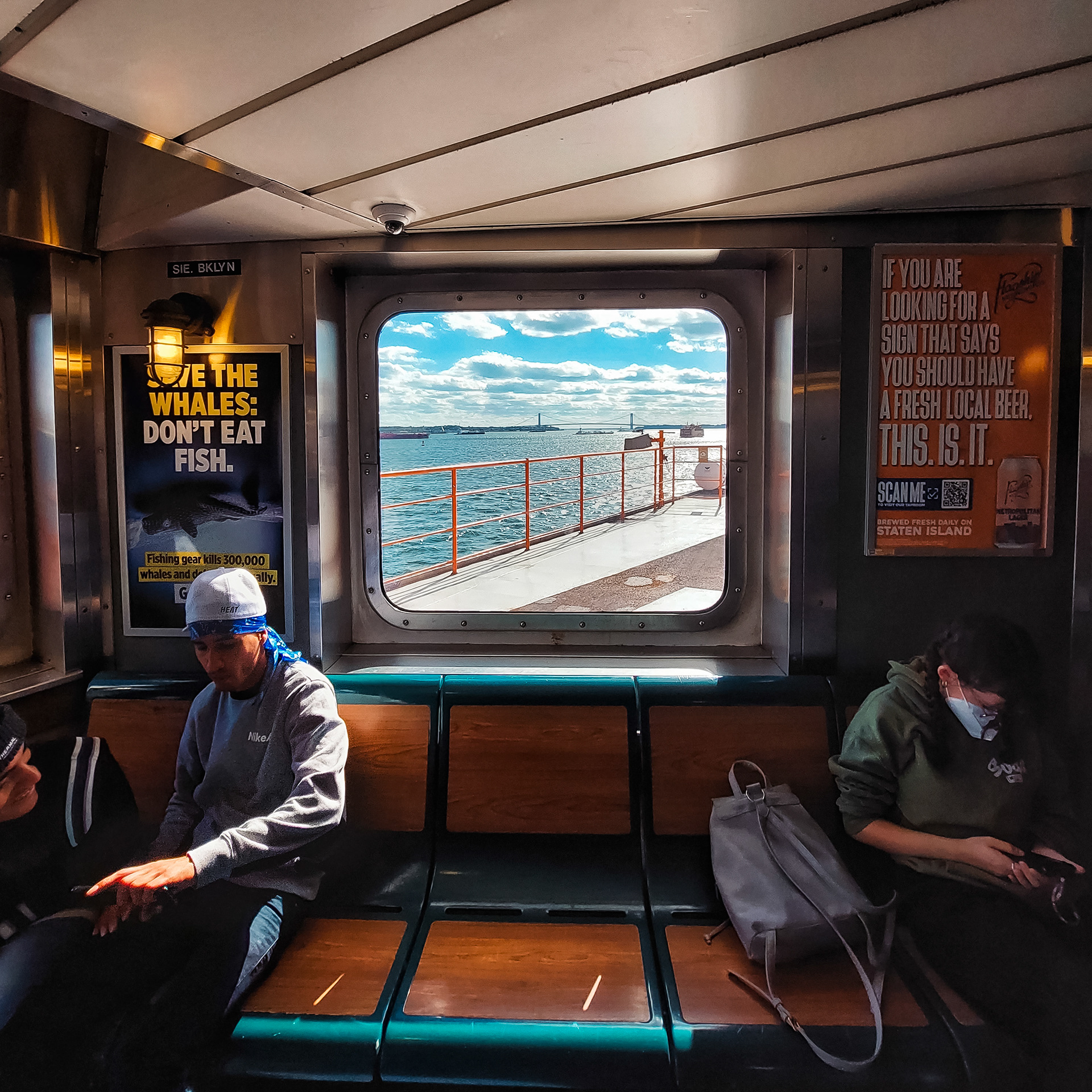 En el ferry que une Manhattan con Staten Island, Nueva York, EE.UU.